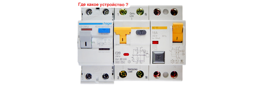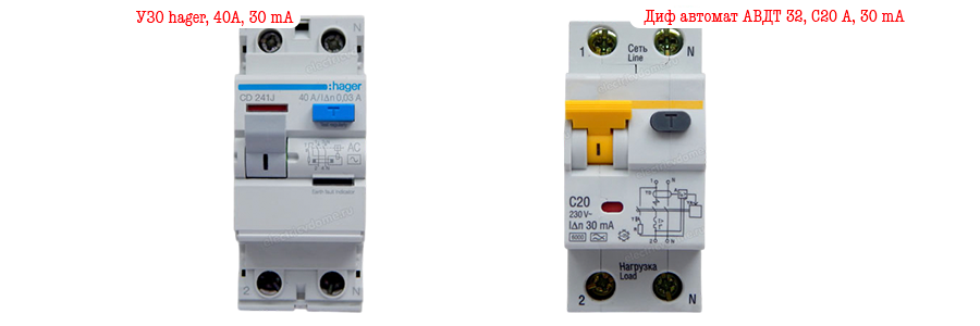 На рисунке слева – УЗО Hager с электромеханическим расцепителем, справа УЗО с электронным расцепителем.