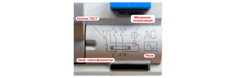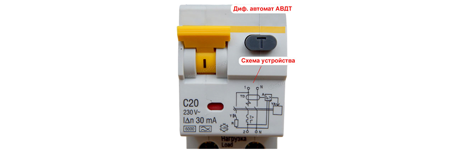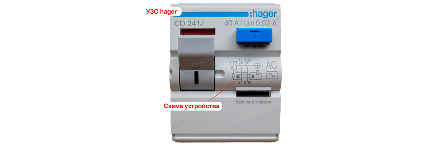 Обратите внимание на схему, изображенную на корпусе УЗО
