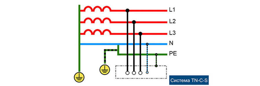 Система данного типа предусматривает заземление нейтрали источника питания – трансформатора подстанции. После ввода в здание совмещенный проводник разделяется на рабочий нулевой проводник и защитный, а затем распределяется между квартирами. Три фазы электрической сети при вводе в дом распределяются на примерно равное количество квартир. Но при нормальном режиме работы электрической сети нагрузка по трем фазам неравномерная, так как жители квартир по-разному эксплуатируют электроприборы, и в разные промежутки времени нагрузка по фазам отличается, причем значительно. При этом напряжение по фазам практически равное, так как нулевой провод играет роль балансира, снижает так называемое напряжение смещения нейтральной точки практически до нуля.